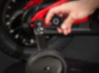 Stödhjulen kan monteras av och på helt utan verktyg, ett enkelt vred räcker, vilket gör övergången till två hjul smidig. Med utan växlar kan barnet fullt ut fokusera på balans och att hantera cykeln utan att bekymra sig över att behöva växla. En trygg och smart lösning för de allra yngsta cyklisterna.
